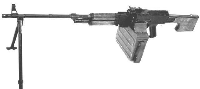 随后,设计人员在PU-2基础上继续改进,1978年推出PU-21机枪,主要对供弹机构简化,不可散弹链仅能从左侧供弹,也可在机匣相同位置插入30发或45发AK-74弹匣供弹。PU-21机枪空枪重5.7公斤,加上200发弹链及弹箱后总重8.5公斤,但仍不具备枪管快速更换功能。