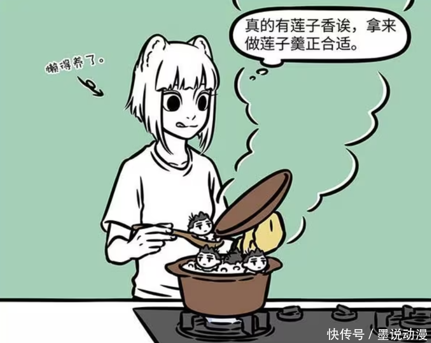 谁能想到九月根本不想养哪吒分身,所以将这些小哪吒都煮成莲子羹。这种做法果然是九月会做的事情,难怪哪吒本体会突然发高烧。不知道水煮哪吒分身是什么口味,不过一般人下不了口,也就九月看起来无所谓。